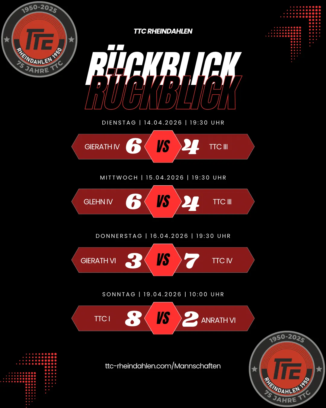 Weiter geht’s nun voraussichtlich mit der Relegation unserer 1. Herren um den Aufstieg in die 2. Bezirksliga, danach beginnt der Sommer-Team-Cup; Tischtennis gibt’s also immer! 🖤❤️